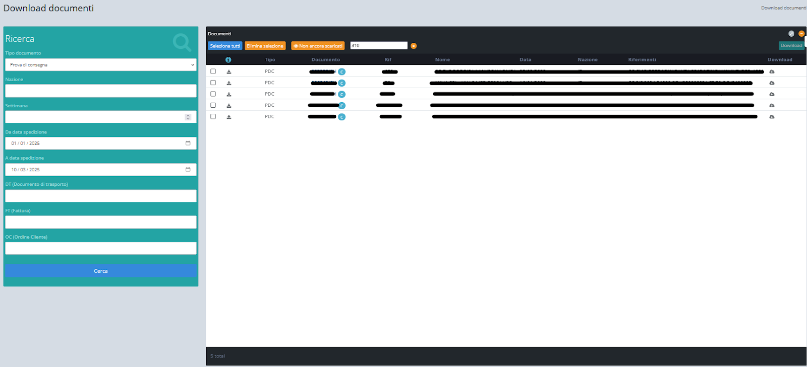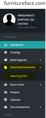 Acceda al portale e selezioni "Download Documenti" → "Bolle Dog./PDC" dal menù laterale sinistro (immagine sotto):