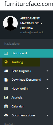 Dal menù laterale sinistro clicchi su "Tracking" (immagine sotto):